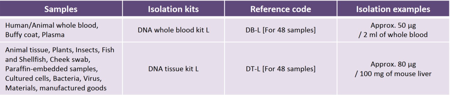 – QuickGene isolation kits are optimized for the system to isolate DN in the shortest time and with the highest quality.
